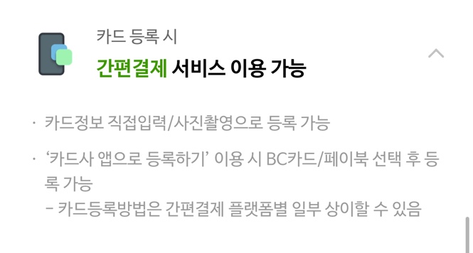카드를 등록하여 간편 결제 서비스를 이용할 수 있습니다.