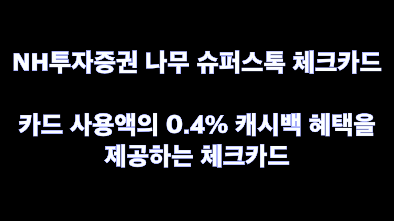 - 2024년 10월 15일 출시한, 카드 사용액의 0.4% 캐시백 혜택을 제공하는 NH투자증권 나무 슈퍼스톡 체크카드입니다.