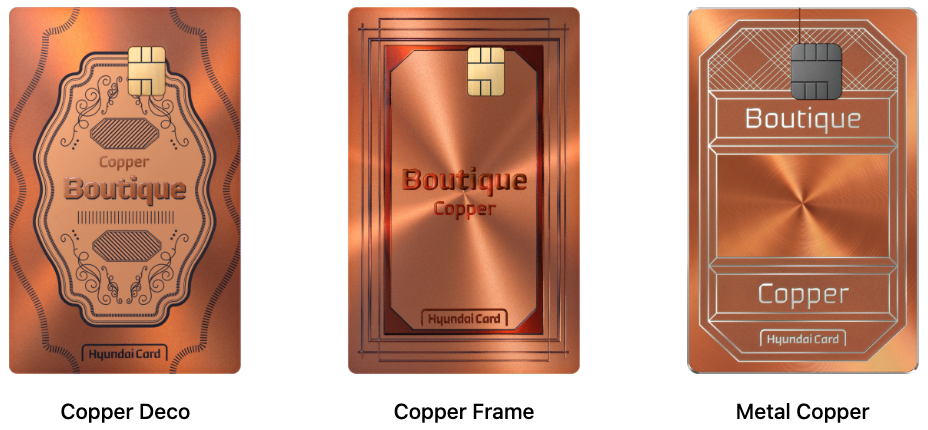 현대카드 더 코퍼는 3종의 플라스틱 플레이트를 제공합니다.