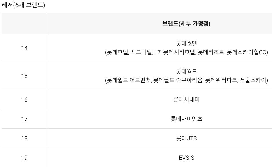 - 롯데호텔 (롯데호텔, 시그니엘, L7, 롯데시티호텔, 롯데리조트, 롯데스카이힐 CC)