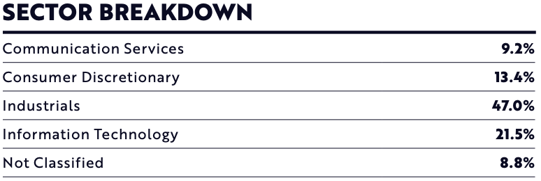 상위 10개의 기업이 자산의 51.16%를 포함하고 있습니다. 39개 기업에 투자합니다. 우주 탐사와 직접적인 연관은 없어 보이나 간접적인 관련이 있는 기업에 투자합니다. 위성통신 발달로 웹 서비스 발달에 도움이 될 것으로 생각됩니다.