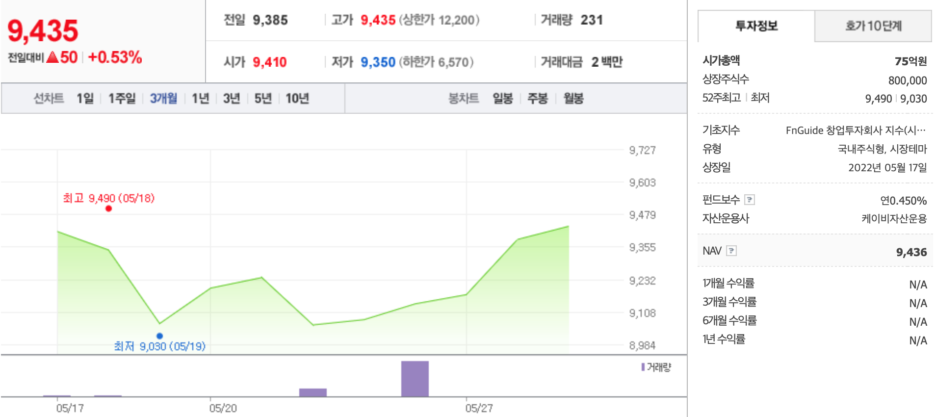 - 운용보수 0.450%의 국내 상장 창업투자기업에 투자하는 KBSTAR Fn창업투자회사 ETF입니다.