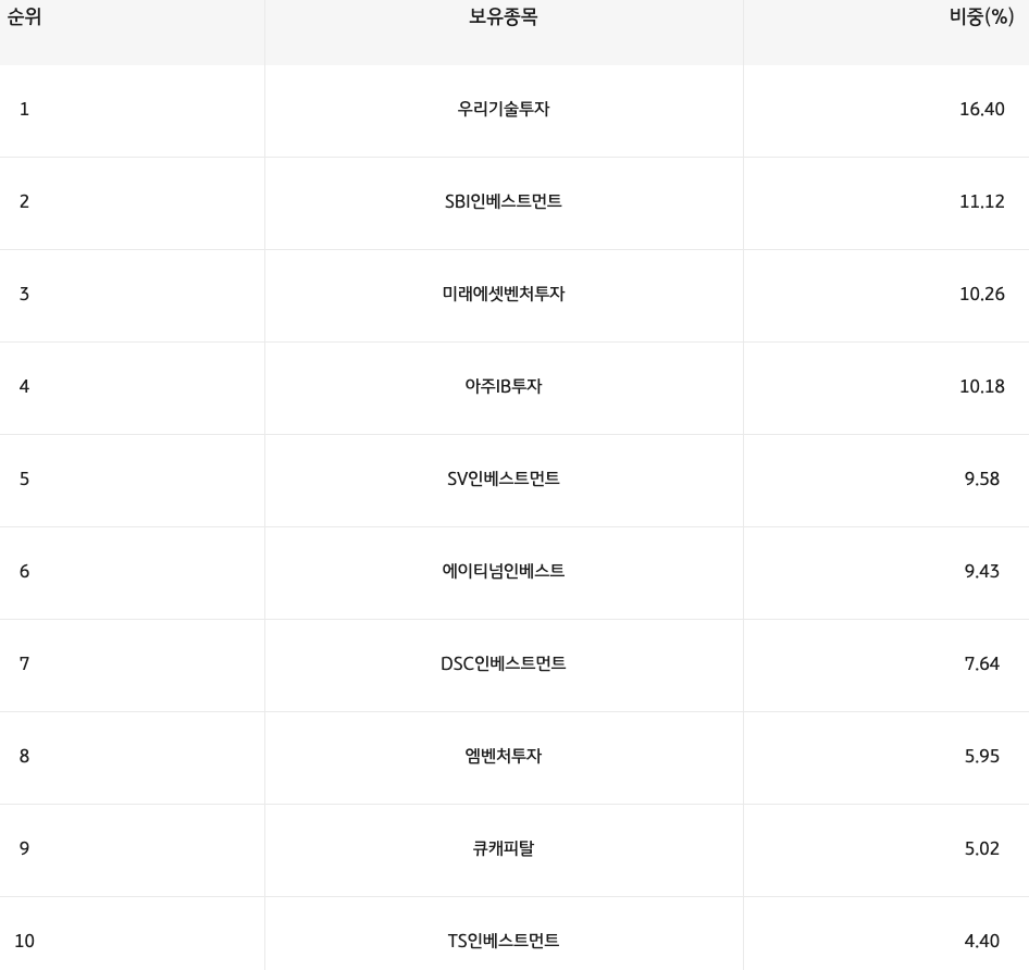 - 미래에셋벤처투자: 10.26%